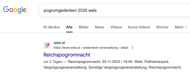 "Da wurde nicht etwa eine Kundgebung zur Reichspogromnacht angekündigt, sondern die Reichspogromnacht selbst", ist der Vorsitzende der Welser Initiative gegen Faschismus, Werner Retzl, entsetzt. "Und damit die Leserinnen und Leser das auch richtig einordnen können, nennt der Eintrag die Pogromnacht eine Vergnügungsveranstaltung."